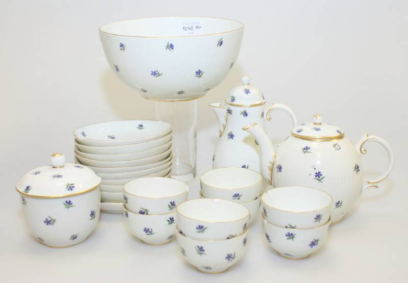12 colored cups 4 cups with blue outsides 6 blue cups 5 large ditto 4 ditto 2 octagonal cups 3 small cups 2 ditto |
