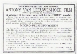 This film, two and a half hours long, is directed by J.C. Mol. The actual film is in the collection of the Eye Museum in Amsterdam. However, they have posted it to YouTube: Antony van Leeuwenhoek.