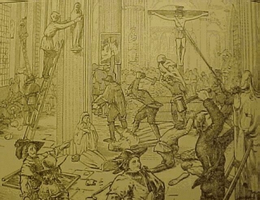 In the northern part of the Spanish Empire, the purification of Catholic churches by Protestants began in the summer of 1566, the miracle year (wonderjaar). In its second phase at the end of the month, the iconoclasm spread north, and included Delft.