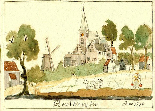 Benthuizen today - It has fewer residents today than Warmond. The oldest structure seems to be the Molen de Haas, a grist mill built more than a century after van Leeuwenhoek lived there. Today, nothing remains in Benthuizen from the 17th century. The engraving above was made by Andries Schoemaker (1660-1735), an Amsterdam businessman who spent his last ten summers touring the Dutch countryside and making the drawings on which this plate is based. The pen and ink below is by Hendrik Tavenier from the late 1700's.