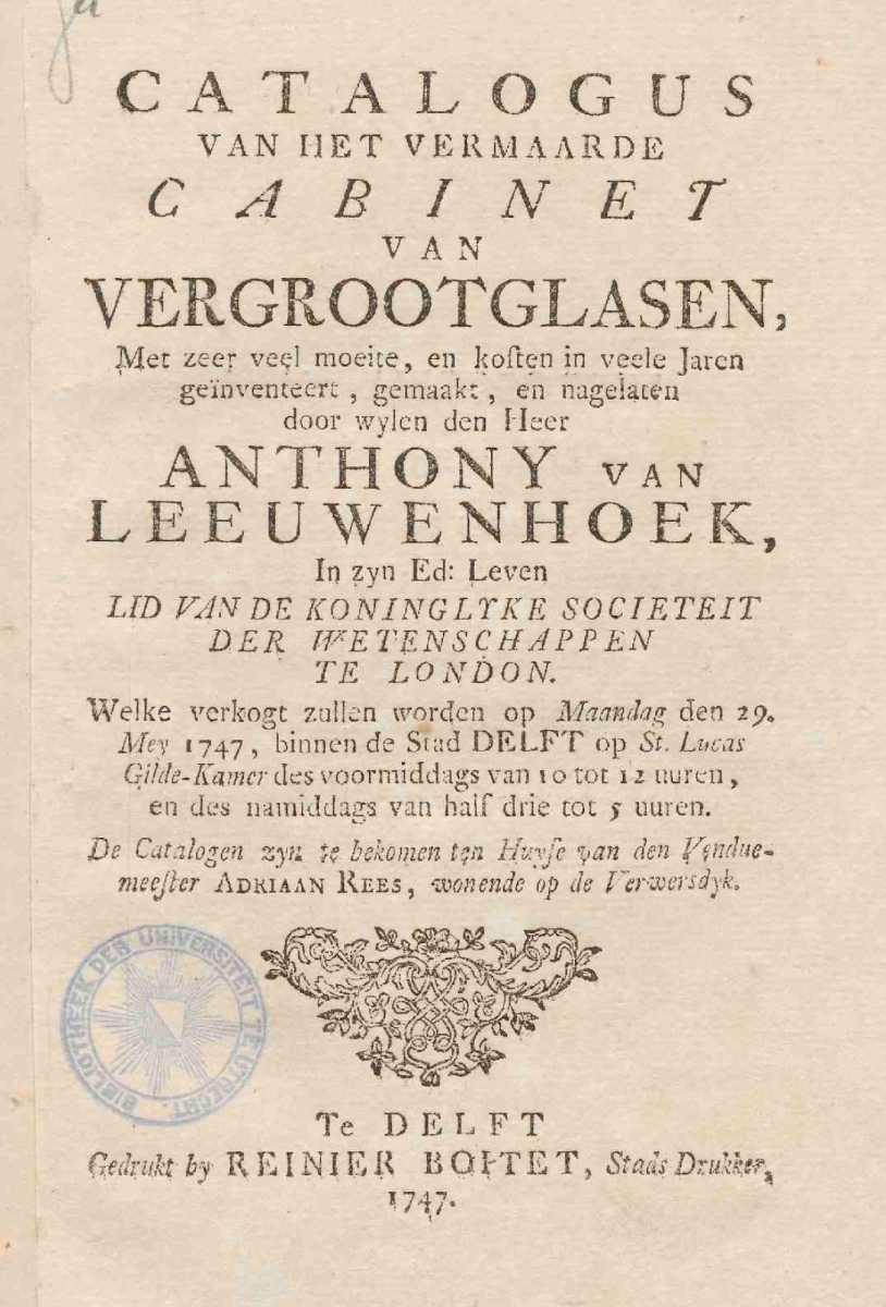 Delft notary admitted in 1724. Was in 1723 one of the executors of Antony van Leeuwenhoek’s will. The viewing day for the auction was in his house. His library and cabinet of rarities were sold in Amsterdam on 15 March 1773.