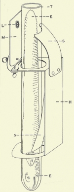 This spring system was for observing infusions. What about much larger animals? Leeuwenhoek wrote about a similar observation of tadpoles on September 7, 1688, by which time he had developed the eel viewer on the left that seems to be a successor to what he descibed in 1677: