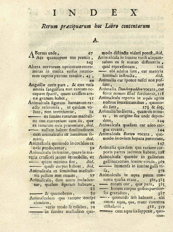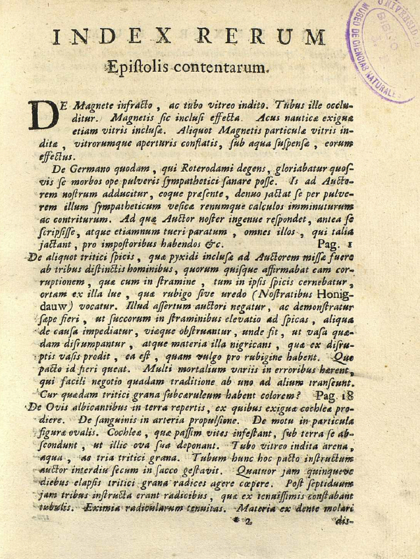 The unpaginated 14-page Index rerum Epistolis contentarum (Index of topics contained in the Letters) is in the place where we now put a table of contents. The entry for each letter is long enough that it would now be called an abstract or summary. They were repeated verbatim at the beginning of each letter.