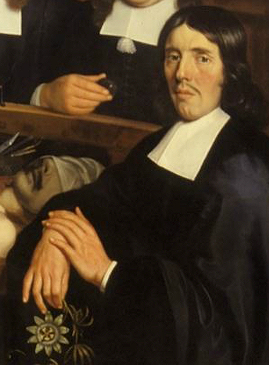 In 1681, he sat for the group portrait by Cornelis de Man now called The Anatomy Lesson of Dr. 's Gravesande (detail above right) along with Leeuwenhoek and Anthonij de Molijn and other members of the surgeon's guild.