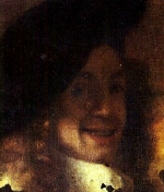 Possible self-portrait (right; click to enlarge) of Johannes Vermeer in 1656 at age 24 in a detail from The Procuress. When Vermeer died, Leeuwenhoek was appointed curator of the tangled estate inherited by his wife Catherine Bolnes.