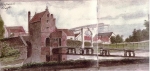 The Koepoort also had a water gate. Given the location away from the Vliet and Schie canals, boats could get to it only by passing under the Oostpoort and Rotterdamse Poort bridges from the sourth or the Haagpoort bridge from the north. The water gate had a lattice fence that was lowered at night just as the land gate was locked each night. As shown in the images (left sidebar), it was too low for boats with masts and sails to pass under.