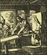 Lambert had been living in Delft since at least 1666, when he apprenticed as a cloth worker (lakenbereider). The image on the right (click for larger version) shows cloth getting shaved and folded. He then worked in the cloth trade at a time when Leeuwenhoek had probably replaced that income with his city job as camerbewaarder. By 1675, Twent was one of the leaders of the St. Nicholas(?) guild, a position he retained for the rest of his life. Leeuwenhoek was a member of that guild; he paid dues until the end of the century.