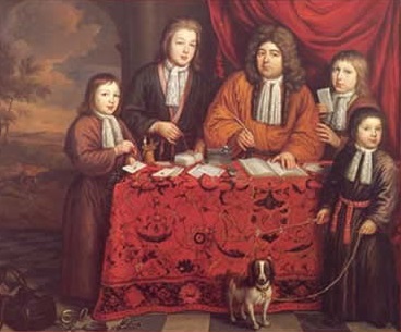The painting on the right by Martin de la Court in 1695 shows Lambert and his four sons, from oldest to youngest: Nicolaes, Zeger, Abraham, and Adriaen.