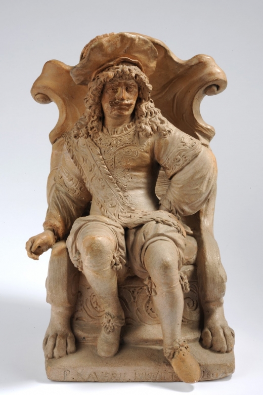 The terracotta of the sheriff (right) comes from Pieter Xavery's 1673 set depicting the Leiden vierschaar.
