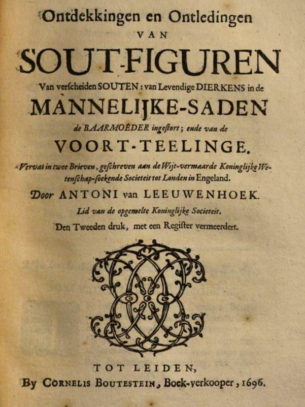 Ontledingen en Ontdekkingen van Sout-figuren van verscheyden Souten: van Levendige Dierkens in de Mannelyke Saden de Baarmoeder ingestort; ende van de Voort-telinge