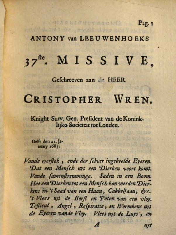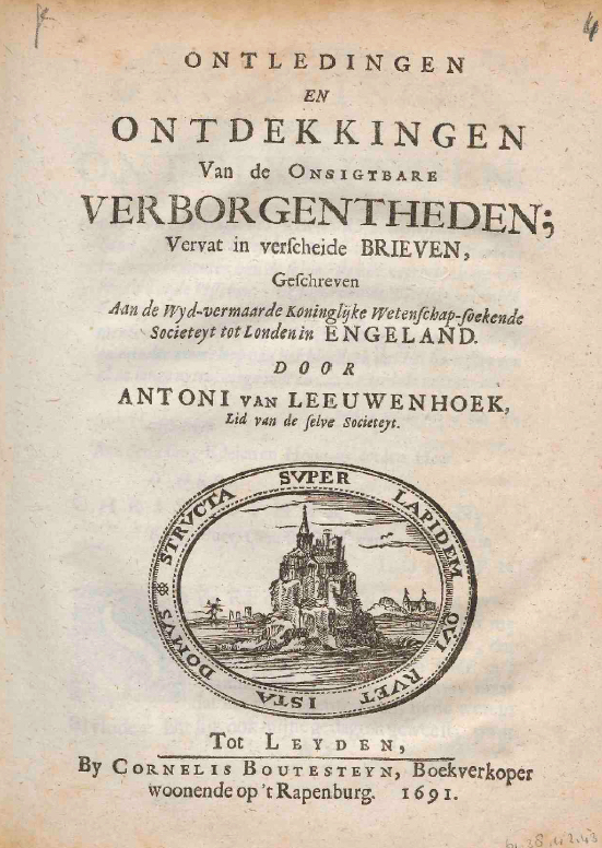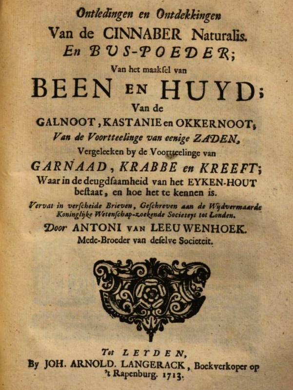 v: Antoni van Leeuwenhoeks r: Ontledingen en Ontdekkingen.
