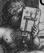The images right and left come from his letter of January 12, 1689, to the Royal Society. In it, he discussed how he made and used his eel and fish viewers. The plate included these two figures. They are also shown on van Seters' figure showing all the types and metal variants. The image below right from the title page of Vijfde Vervolg der Brieven in 1696 shows an angel bringing a loupe to her eye.