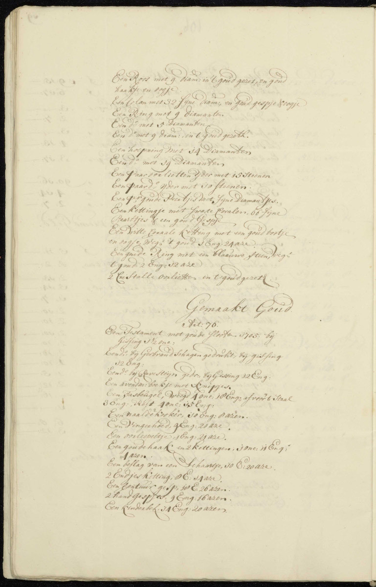 Article 76: Worked gold: 1 pound 10 ounces 7 Engels 13 azen | ~ 1192 gl 10 st |