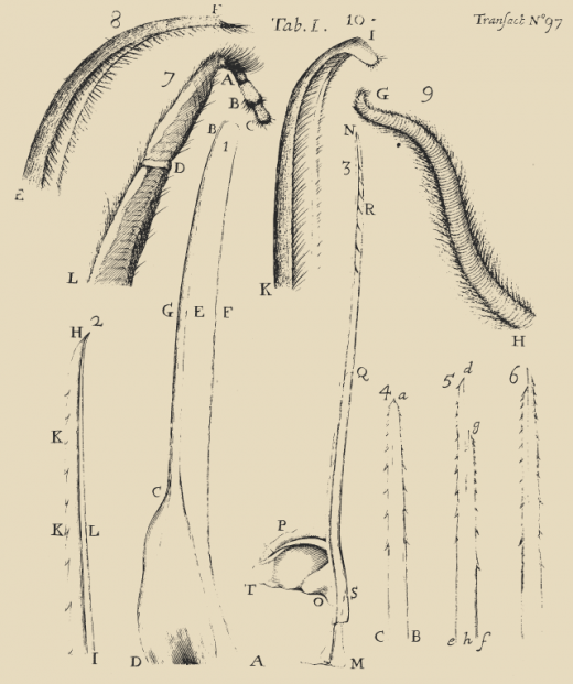 Some of those "more Observations" accompanied the drawings in the first letter, but Oldenburg didn't publish the drawings (below) and detailed explanations until the fall of 1673. By then, he had already received Leeuwenhoek's second letter.